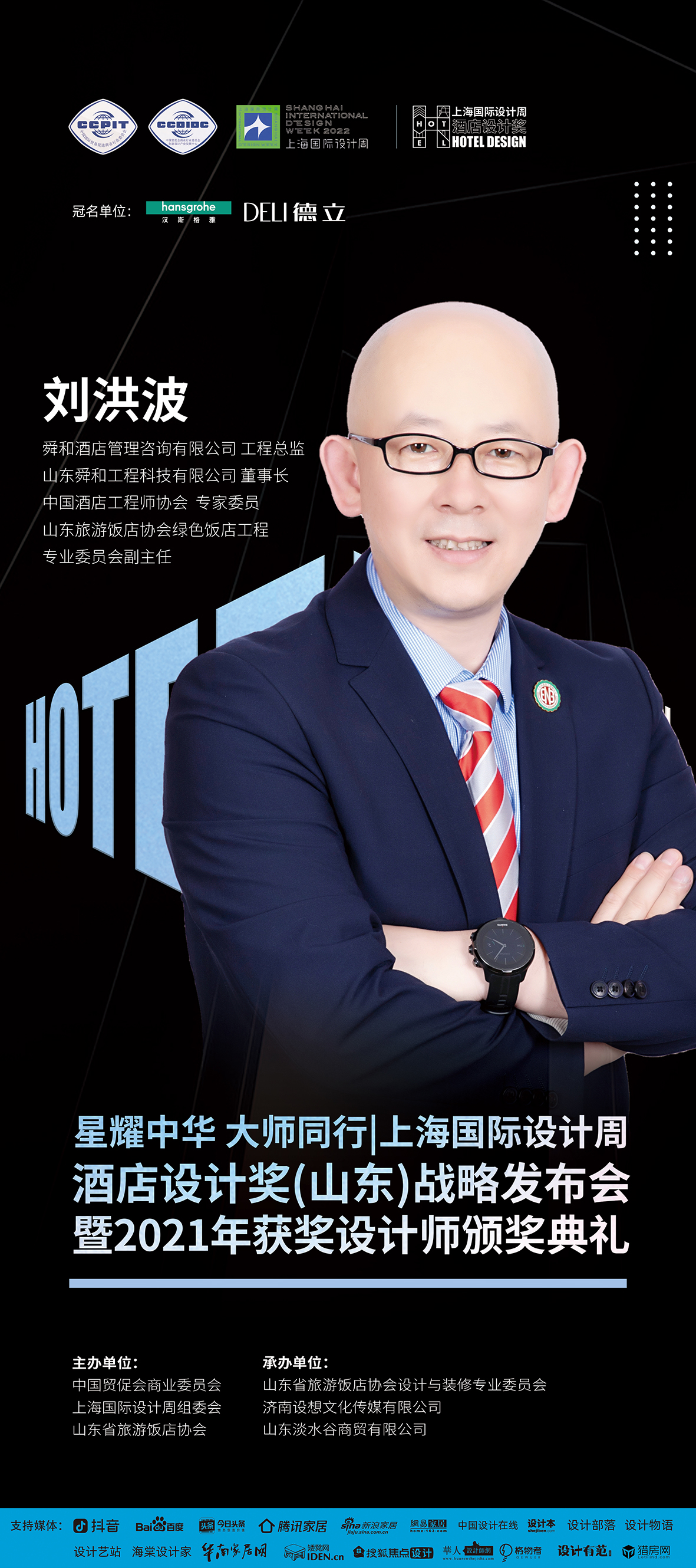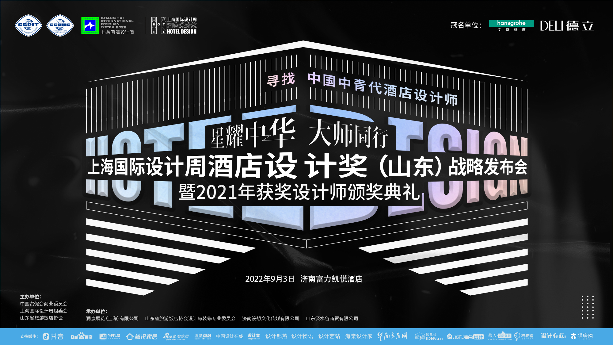 2022年9月3日,上海国际设计周酒店设计奖(山东)战略发布会将在济南富力凯悦酒店举办,本次活动由中国贸促会商业委员会、上海国际设计周组委会、山东省旅游饭店协会主办,山东省旅游饭店协会设计与装修专业委员会、济南设想文化传媒有限公司、山东淡水谷商贸有限公司承办,汉斯格雅、德立淋浴房冠名,光益地板、安德蒙特、凯恩家美定制特约支持。本次活动获得抖音、百度、今日头条、腾讯家居、新浪家居、网易家居、搜狐焦点设计、中国设计在线、设计本、设计部落、设计物语、设计艺站、华人设计网、海棠设计家、华南家居网、矮凳网、格物者、设计有范、猎房网等媒体的大力支持。