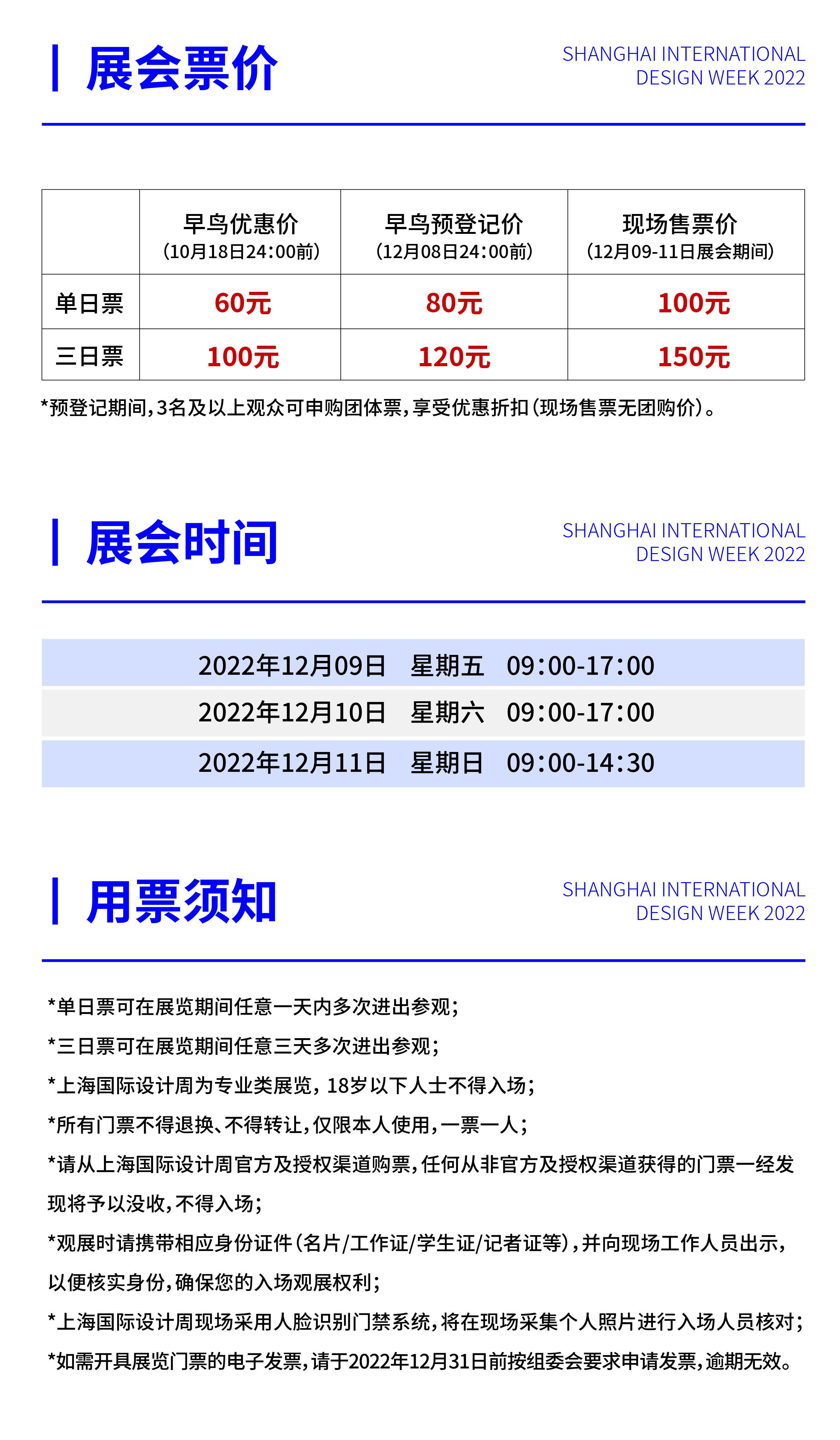 由于原定于2021年在上海举办的第四届上海国际设计周创意设计展&上海国际设计周设计驱动供应链展双联展推迟至2022年9月并移师武汉举办,对于已经预登记的观众朋友,组委会也制定了相应的票务处理政策: