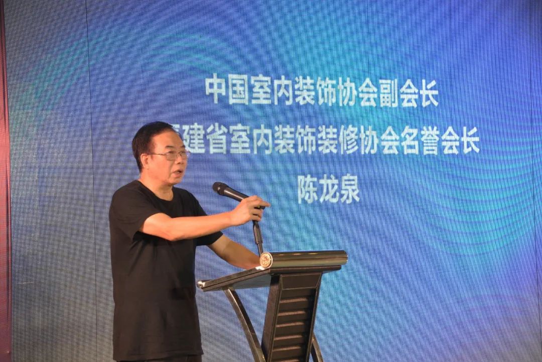 最后,中国室内装饰协会副会长、福建省室内装饰装修协会名誉会长陈龙泉致辞。他表示设计是装饰装修的灵魂,伴随人们审美水平的不断提升,现在装修对前期设计更为注重。陈龙泉希望通过系列活动的举办,为更多设计师提供良好的成长平台,引导他们成为设计界的后备军,不断提高设计水平,促进装修装饰设计的发展。