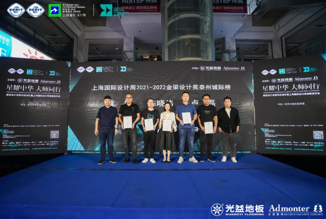 新锐设计奖继深圳、武汉、重庆、福州站启动礼结束之后,2022年9月16日,由中国贸促会商业委员会、上海国际设计周组委会主办,泰州装饰招标网、泰州市室内设计学会、泰州月星家居广场管理有限公司承办,光益地板、安德蒙特冠名,圣都装饰、阔达装饰、德国威能、ASKO、TATA木门、方太电器、艺霖国际特约支持的「星耀中华 大师同行」新锐设计奖泰州启动礼暨上海国际设计周战略发布会圆满收官!