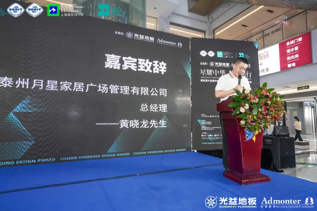 泰州月星家居广场作为「星耀中华 大师同行」新锐设计奖泰州启动礼暨上海国际设计周战略发布会的承办单位,泰州月星家居广场管理有限公司总经理黄晓龙先生对本次活动的举办表示期待,充分表达出家具与品牌之间相融的愿景,并希望设计师们能够携手共创未来行业蓝图。