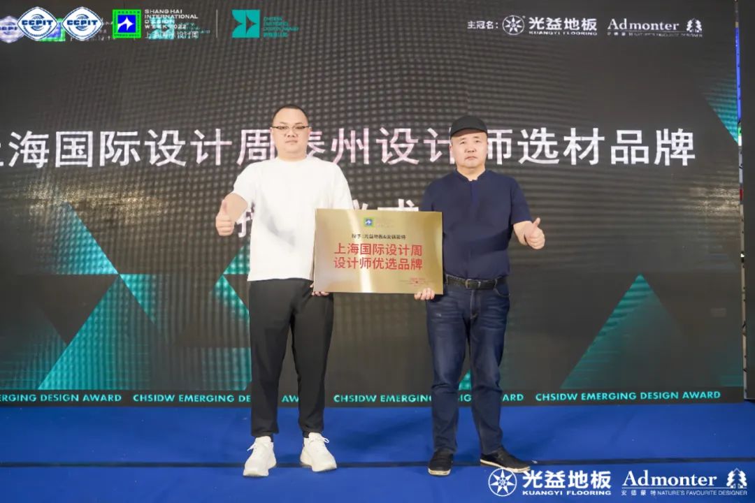 活动现场,上海国际设计周秘书长黄志明先生正式向光益地板授予上海国际设计周泰州设计师选材品牌荣誉牌匾。