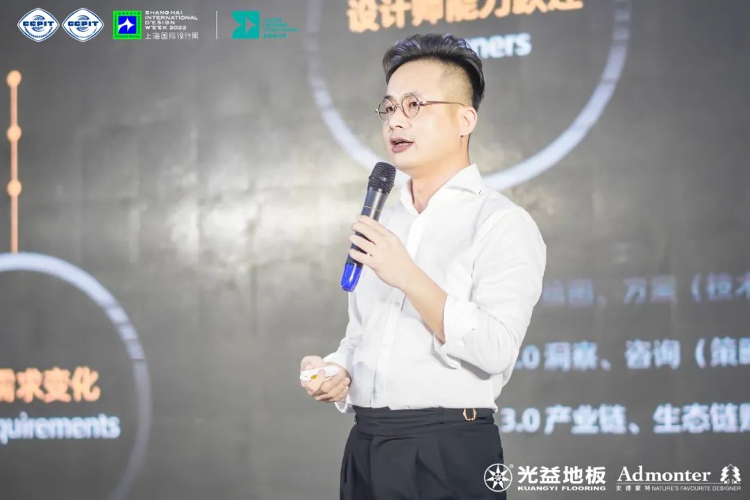活动现场,大会主办方邀请了中国贸促会商业委员会创意设计中心执行主任、深圳市盘石室内设计有限公司创始人&董事长吴文粒,上海国际设计周艺术总监、上海国际设计周设计无国界IP主理人、中国香港环亚联合设计创始人杨志伟,江苏省室内设计学会副理事长、泰州市室内设计会长、泰州学院美术学院特聘教授王杰,第三届日本IDPA AWARD 国际先锋设计大奖赛2020-2021 年度TOP100 国际影响力创新设计师韦鹏飞四位设计大咖进行精彩开讲!