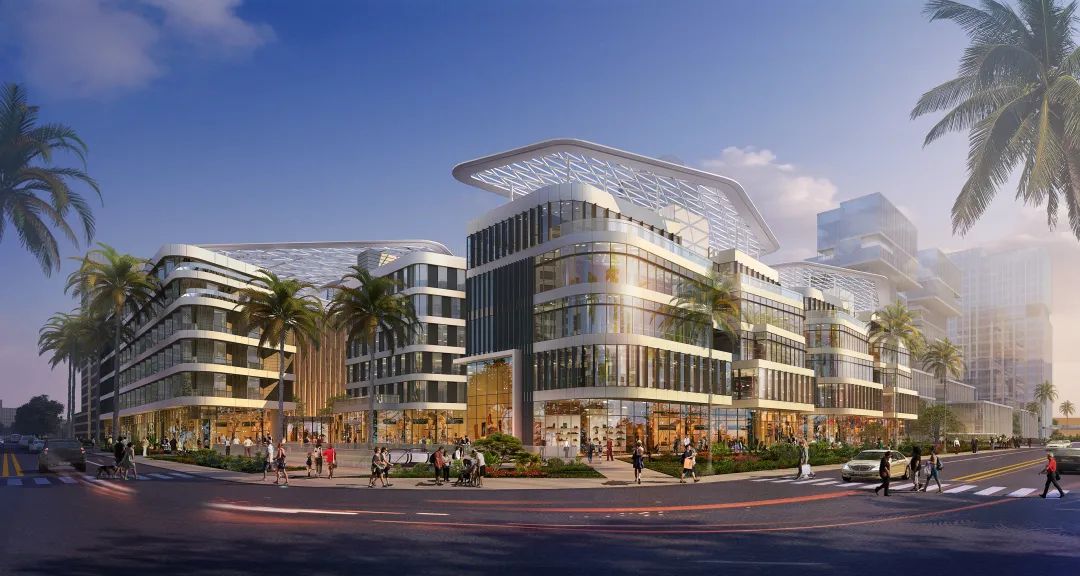 生活体验大道从最南端的三角公园启始,如同棕榈树的主干,延伸至北部地块,再一直达到湿地公园。在这条主干道的地上地下布置商业,娱乐,办公,酒店等设施,如同树叶悬挂在体验大道这棵挺拔的树干两端。宽大的裙楼屋顶平台用于社交与休闲. 户外的咖啡厅与用餐服务可观赏三角绿带公园。