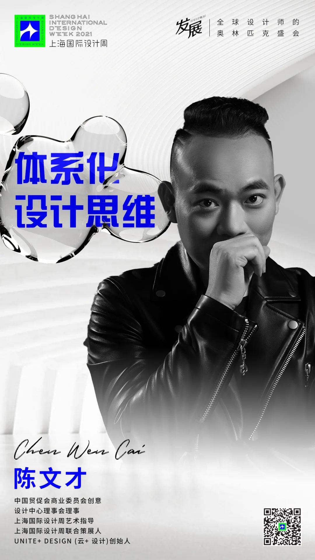 本次活动,我们特别邀请到中国贸促会商业委员会创意设计中心理事会理事、上海国际设计周艺术指导、上海国际设计周联合策展人,UNITE+ DESIGN (云+ 设计) 创始人陈文才为我们带来“体系化的设计思维”分享!